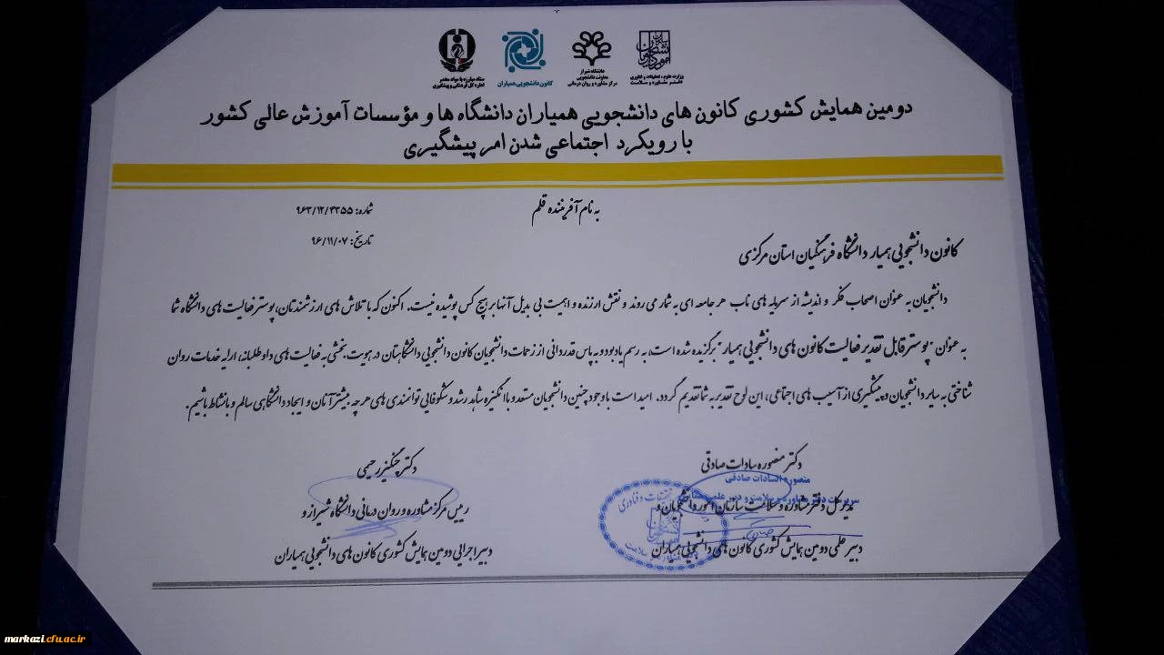 کسب عنوان پوستر قابل تقدیر در دومین همایش کشوری کانون های دانشجویی همیاران سلامت روان 3