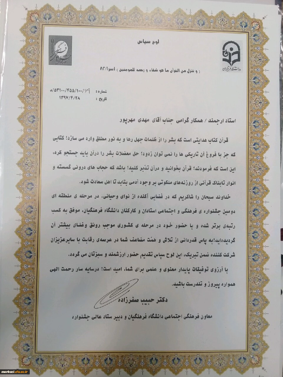 رئیس پردیس شهیدباهنر