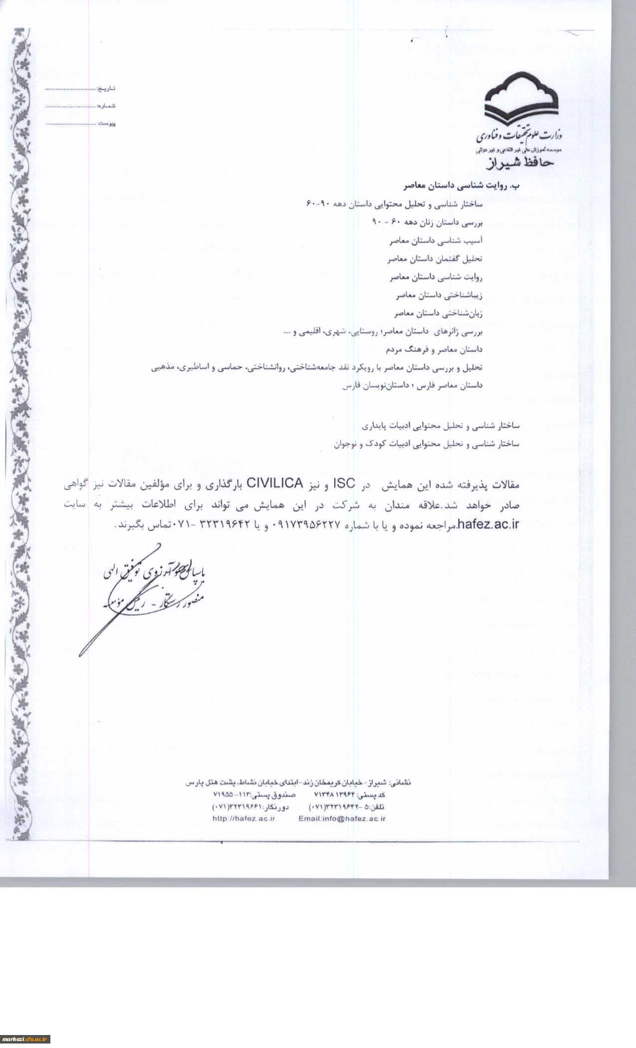 قابل توجه اعضای محترم هیئت علمی فراخوان شرکت در همایش ملی ادبیات معاصر 2