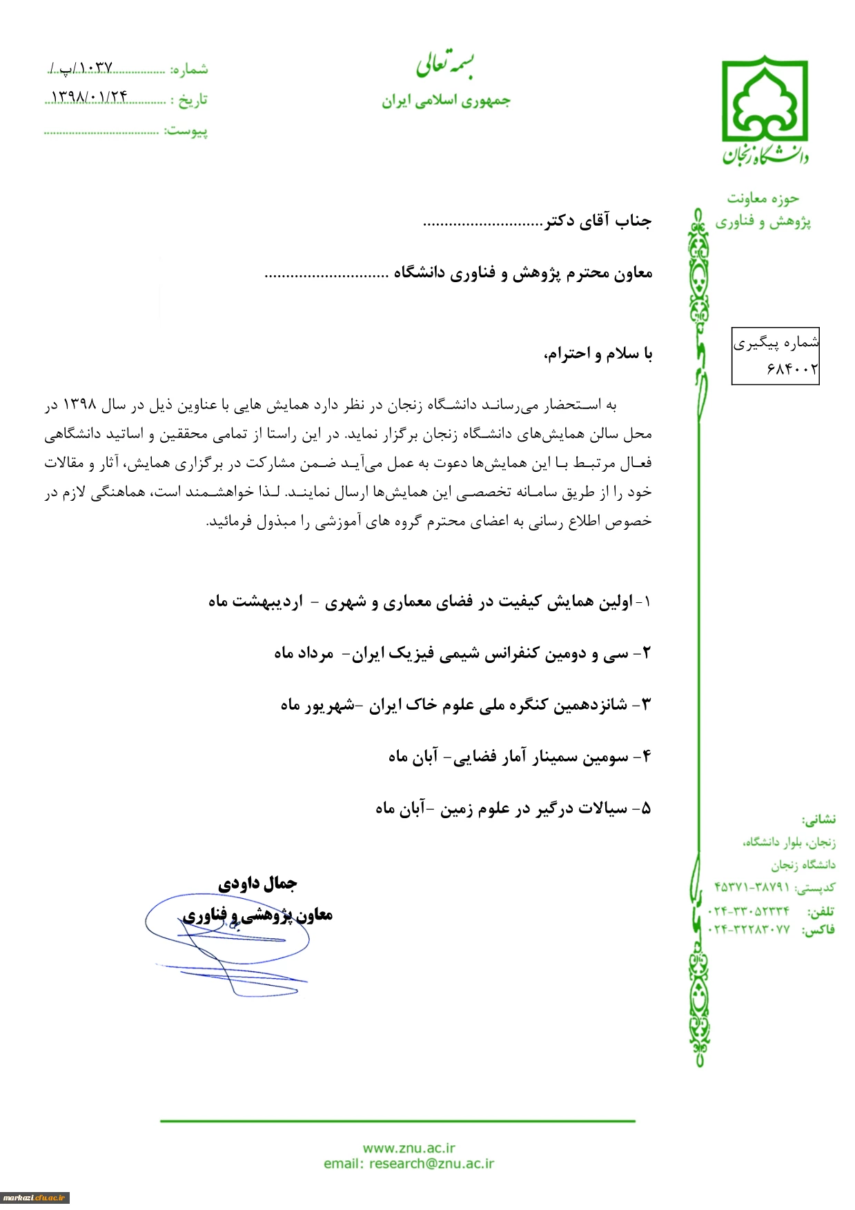 اطلاعیه همایش های سال 1398 دانشگاه زنجان 2