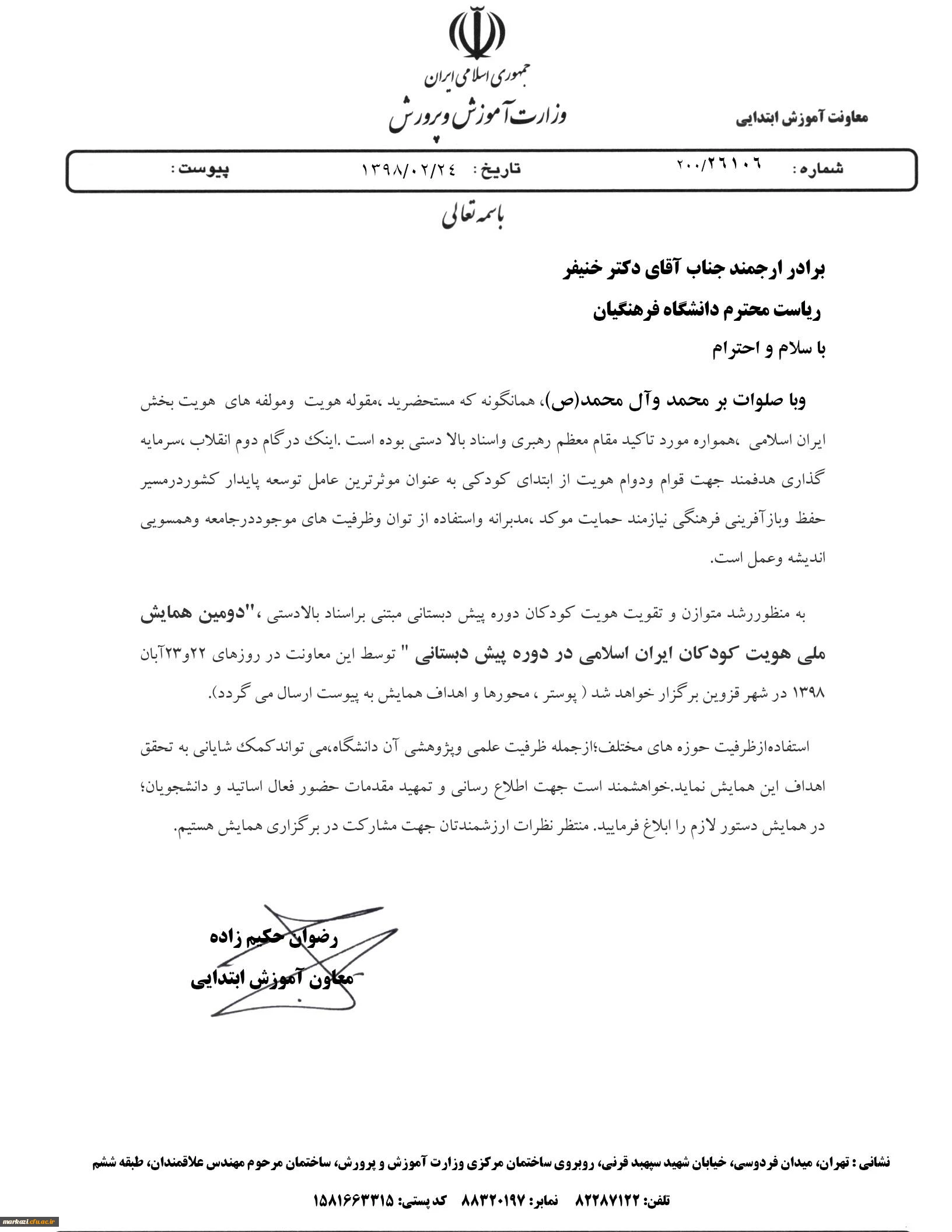 امتیاز دهید : فراخوان دومین همایش هویت کودکان ایران اسلامی در دوره پیش دبستانی 2 سهشنبه 31 اردیبهشت 1398 ساعت 14:55