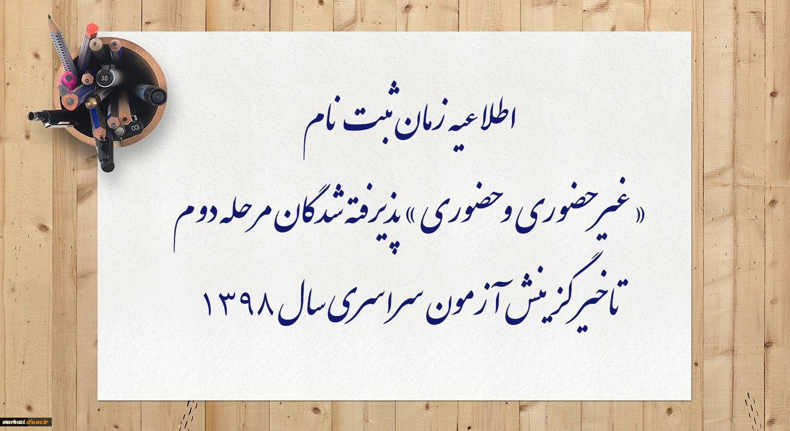 اطلاعیه زمان ثبت نام « غیر حضوری و حضوری » پذیرفته شدگان مرحله دوم تاخیر گزینش آزمون سراسری سال 1398 2