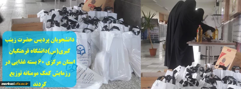 دانشجویان پردیس حضرت زینب کبری(س)دانشگاه فرهنگیان استان مرکزی 60 بسته غذایی در رزمایش کمک مومنانه توزیع کردند 2