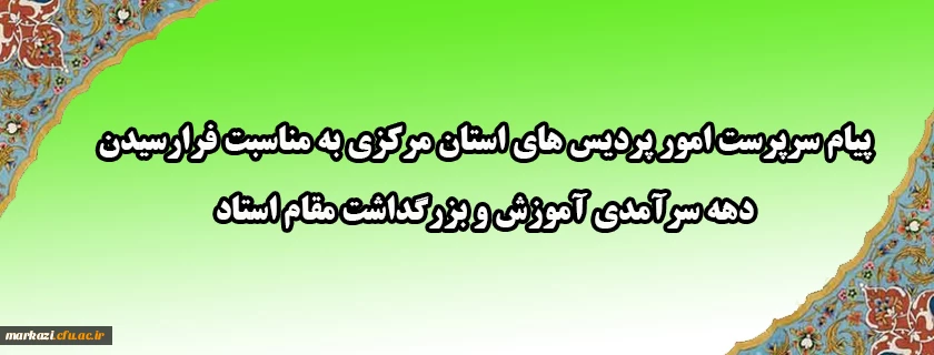 پیام تبریک سرپرست امور پردیس های استان مرکزی به مناسبت فرارسیدن دهه سرآمدی آموزش و مقام استاد 2