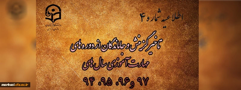 جاماندگان از ثبت نام (وتاخیرگزینش) در دوره های مهارت آموزی سال های 98 ،97 ، 96 ، 95 ،94 2
