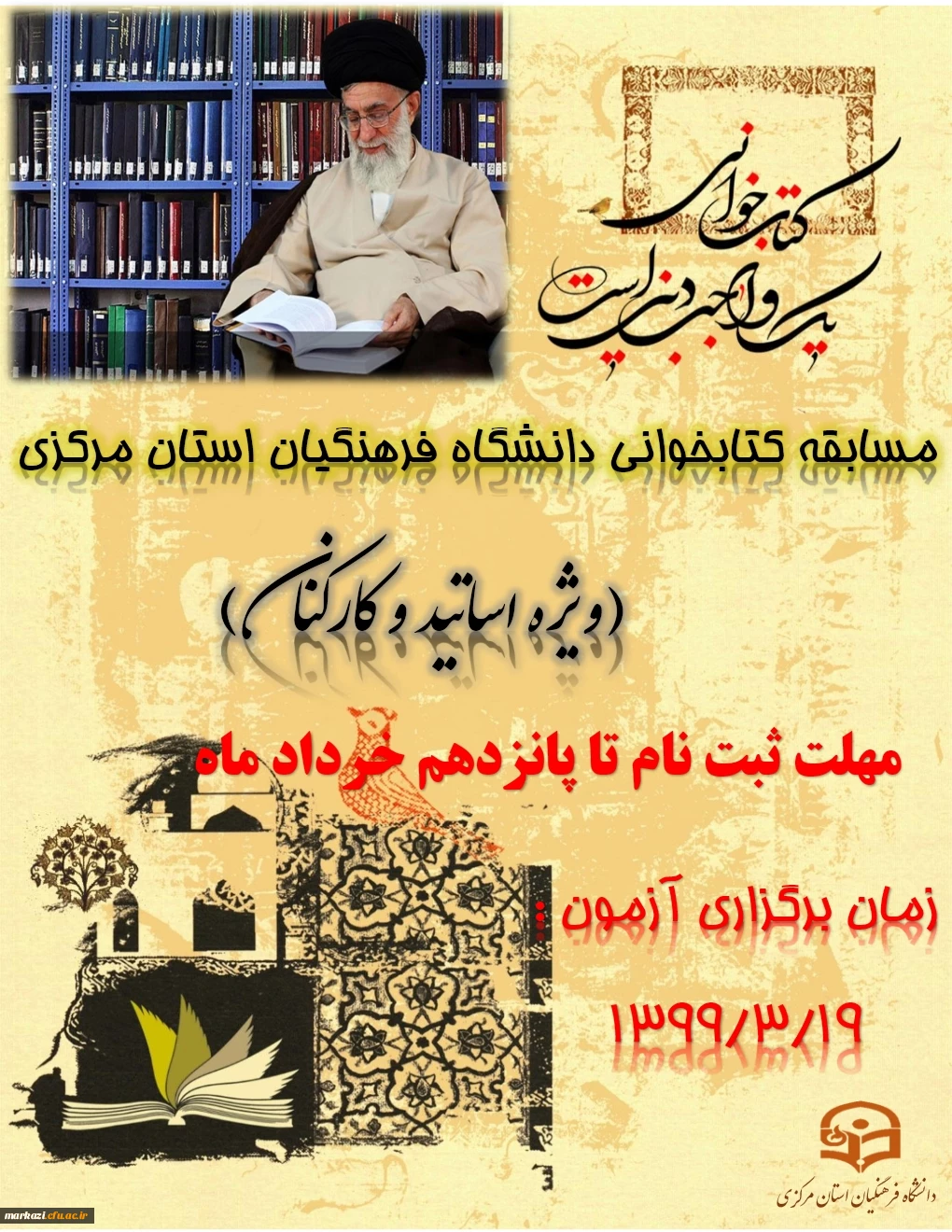امتیاز دهید : مسابقه کتابخوانی ویژه اساتید و کارکنان دانشگاه فرهنگیان استان مرکزی 3 دوشنبه 12 خرداد 1399 ساعت 8:23