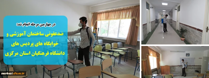 امتیاز دهید : ضدعفونی ساختمان آموزشی و خوابگاه های پردیس های دانشگاه فرهنگیان استان مرکزی 2 سهشنبه 27 خرداد 1399 ساعت 12:25