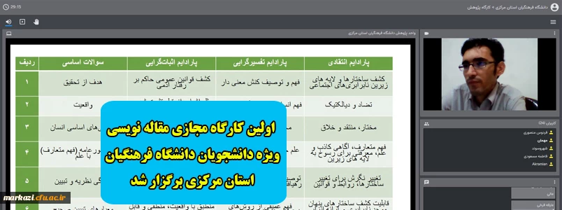 اولین کارگاه مجازی مقاله نویسی ویژه دانشجویان دانشگاه فرهنگیان استان مرکزی برگزار شد 2
