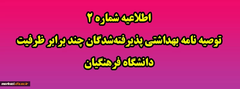 اطلاعیه شماره 2 توصیه نامه بهداشتی پذیرفته شدگان چند برابر ظرفیت دانشگاه فرهنگیان 2