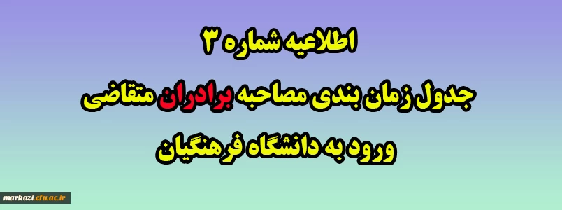اطلاعیه شماره 3 جدول زمان بندی مصاحبه برادران متقاضی ورود به دانشگاه فرهنگیان 2