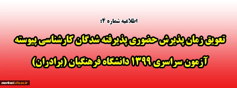تعویق زمان پذیرش حضوری پذیرفته شدگان کارشناسی پیوسته آزمون سراسری 1399 دانشگاه فرهنگیان (برادران) 2