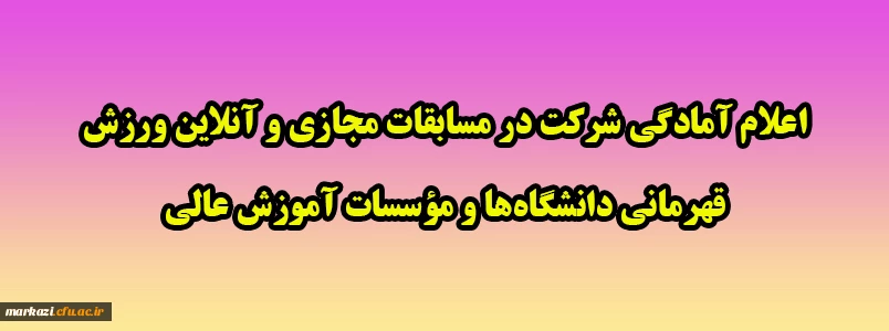 اعلام آمادگی شرکت در مسابقات مجازی و آنلاین ورزش قهرمانی دانشگاه ها و مؤسسات آموزش عالی 2