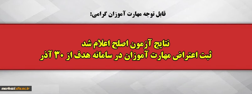 امتیاز دهید : نتایج آزمون اصلح اعلام شد ثبت اعتراض مهارت آموزان در سامانه هدف از 30 آذر 2 یکشنبه 30 آذر 1399 ساعت 12:31
