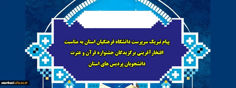 پیام تبریک سرپرست دانشگاه فرهنگیان استان به مناسبت افتخارآفرینی برگزیدگان جشنواره قرآن و عترت دانشجویان پردیس های استان 2