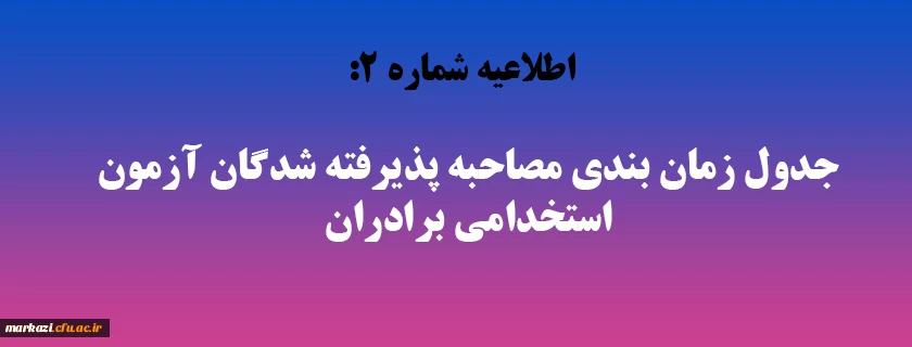 امتیاز دهید : جدول زمان بندی مصاحبه پذیرفته شدگان آزمون استخدامی برادران 2 سهشنبه 21 بهمن 1399 ساعت 13:13