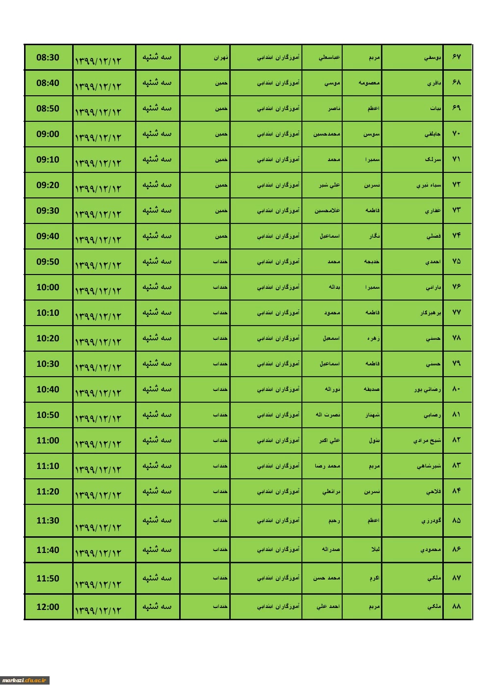 جدول زمان بندی مهارت آموزان