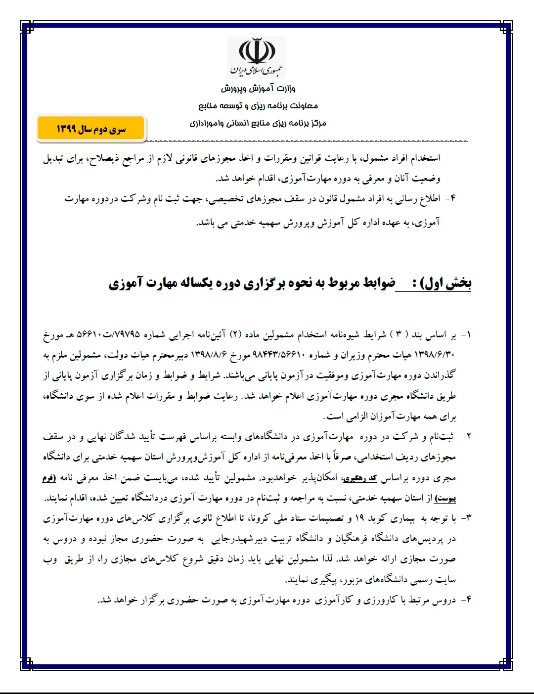 اطلاعیه ثبت نام مهارت آموزان و حق الدریس و سواد آموز و خرید خدمت و پیش دبستان