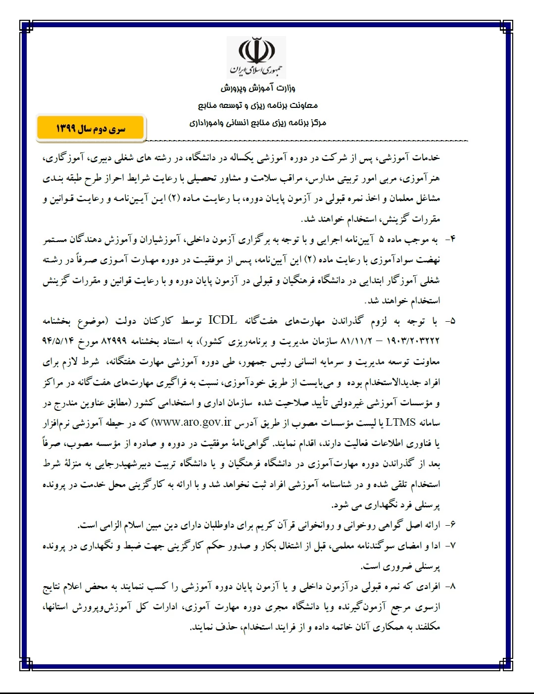 اطلاعیه ثبت نام مهارت آموزان و حق الدریس و سواد آموز و خرید خدمت و پیش دبستان