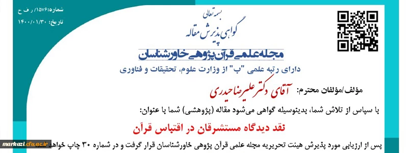 پذیرش و چاپ مقاله علمی عضو هیأت علمی دانشگاه فرهنگیان استان مرکزی در یک مجله بسیار معتبر 2