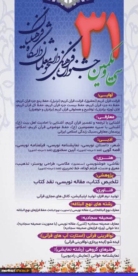 امتیاز دهید : آغاز ثبت نام سی و یکمین جشنواره فرهنگی دانشجو معلمان دانشگاه فرهنگیان 2 شنبه 22 خرداد 1400 ساعت 12:04