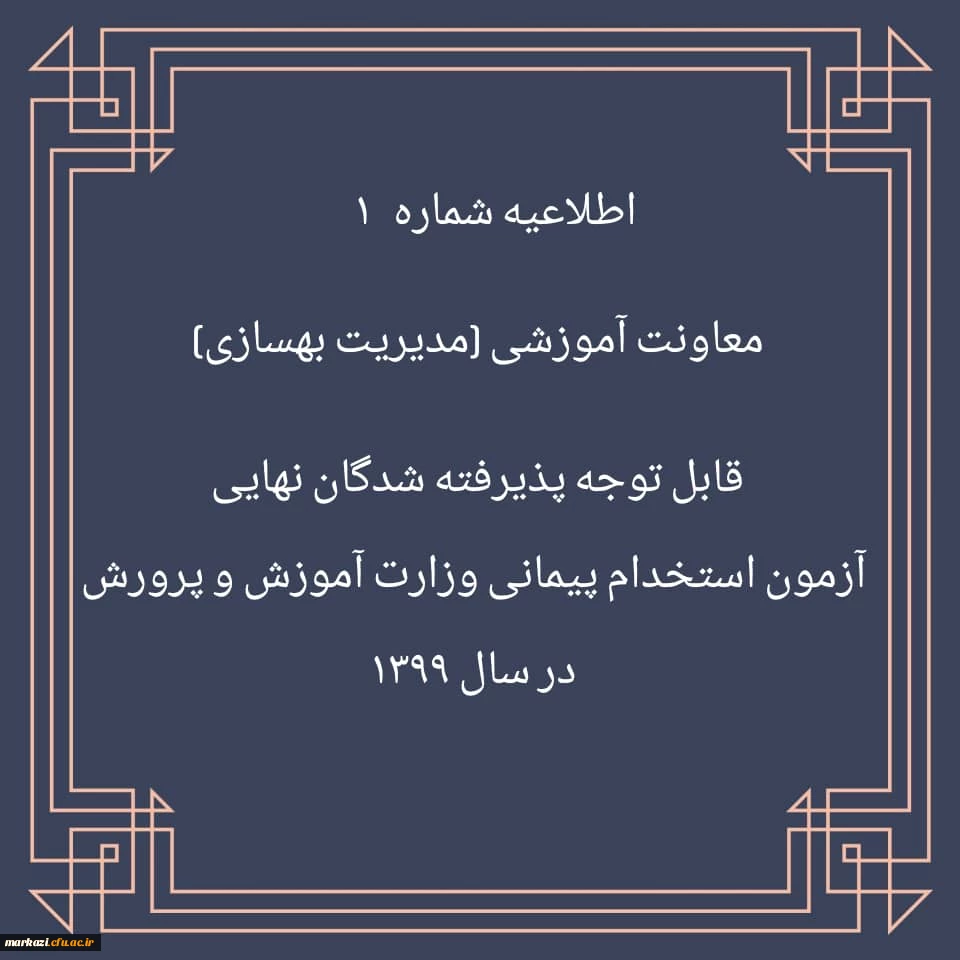 اطلاعیه شماره 1 معاونت آموزشی (مدیریت بهسازی منایع انسانی) قابل توجه پذیرفته شدگان نهایی آزمون استخدام پیمانی وزارت آموزش و پرورش در سال 1399 2