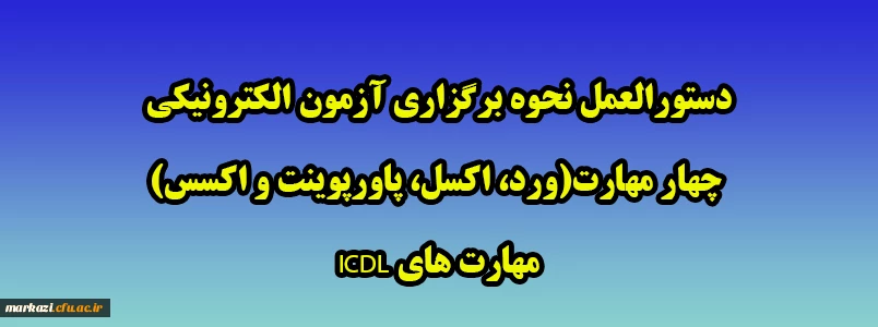 دستورالعمل نحوه برگزاری آزمون الکترونیکی چهار مهارت(ورد، اکسل، پاورپوینت و اکسس) مهارت های ICDL 2