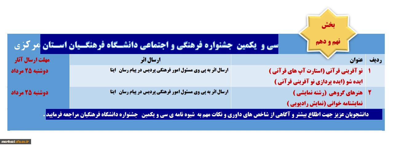 امتیاز دهید : جدول زمانبندی برگزاری بخشهای دهگانه مسابقات قرآن و عترت دانشگاه فرهنگیان 7 شنبه 9 مرداد 1400 ساعت 9:42