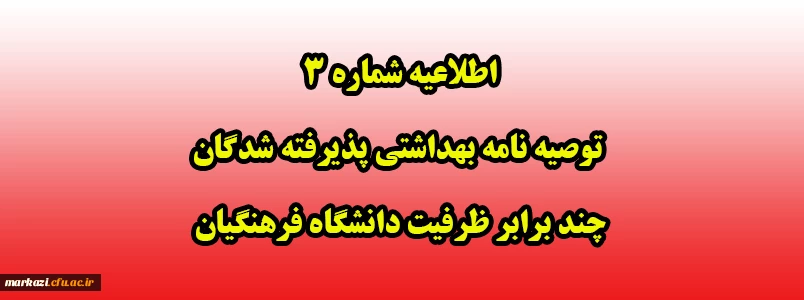 اطلاعیه شماره 3 توصیه نامه بهداشتی پذیرفته شدگان چند برابر ظرفیت دانشگاه فرهنگیان 2