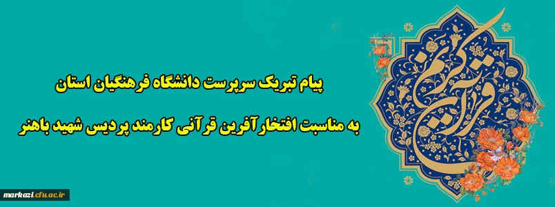 پیام تبریک سرپرست دانشگاه فرهنگیان استان به مناسبت افتخارآفرین قرآنی کارمند پردیس شهید باهنر 2