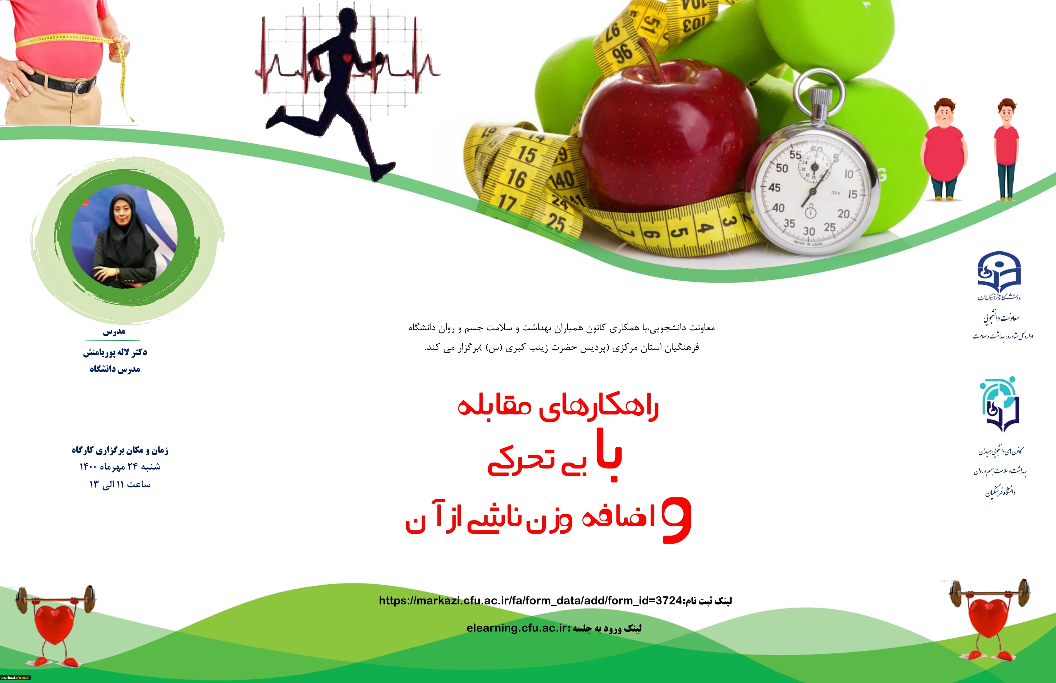 امتیاز دهید : کارگاه مجازی : راهکارهای مقابله با چاقی و اضافه وزن ناشی از آن 2 یکشنبه 18 مهر 1400 ساعت 10:36