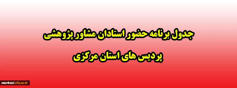 امتیاز دهید : جدول برنامه حضور استادان مشاور پژوهشی پردیس های استان مرکزی 2 چهارشنبه 5 آبان 1400 ساعت 10:56