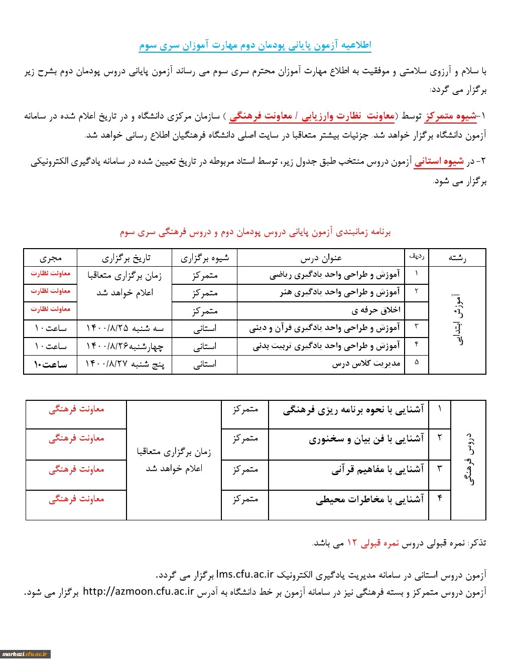 آئین نامه انضباطی و اخلاقی دانشجو معلمان