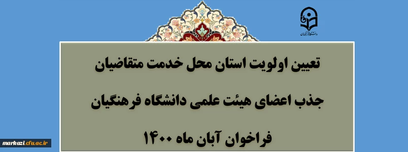 تعیین اولویت استان محل خدمت متقاضیان جذب اعضای هیأت علمی فراخوان آبان 1400 دانشگاه فرهنگیان 2
