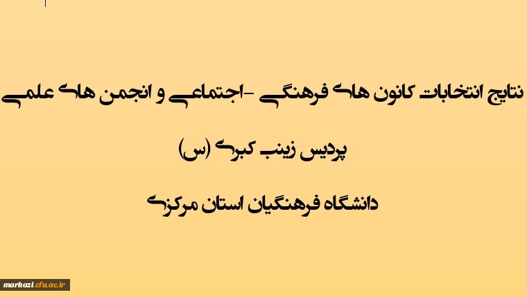 اعلام نتایج انتخابات کانون های فرهنگی -اجتماعی و انجمن های علمی پردیس زینب کبری (س) دانشگاه فرهنگیان استان مرکزی 2