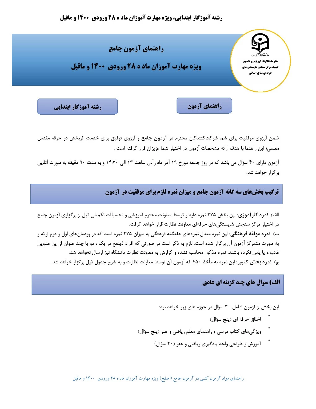 فایل راهنمای آزمون اصلح ویژه مهارت آموزان ماده 28