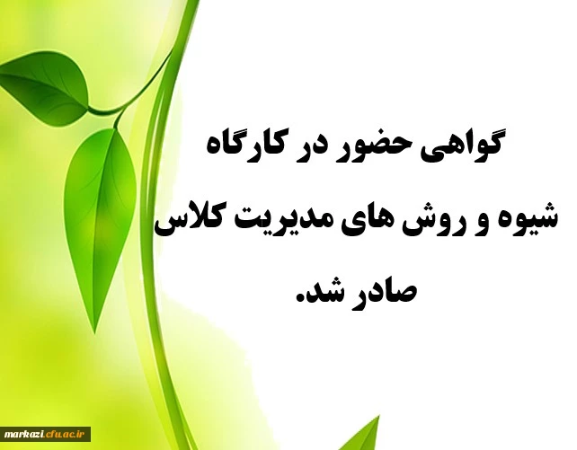 امتیاز دهید : گواهی حضور در کارگاه شیوه و روش های مدیریت کلاس صادر شد. 2 دوشنبه 22 آذر 1400 ساعت 12:40