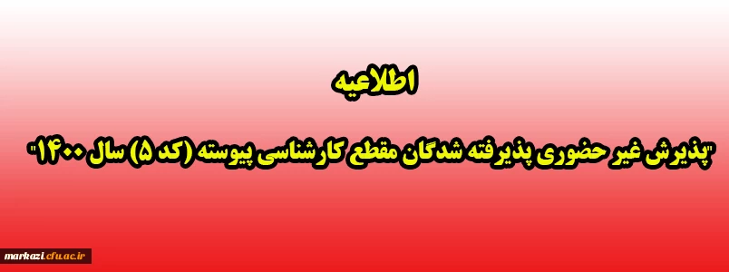 امتیاز دهید : پذیرش غیر حضوری پذیرفته شدگان مقطع کارشناسی پیوسته (کد 5) سال 1400 2 دوشنبه 20 دی 1400 ساعت 10:29