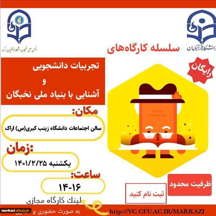 امتیاز دهید : کارگاه تجربیات دانشجویی و آشنایی با بنیاد ملی نخبگان 3 شنبه 24 اردیبهشت 1401 ساعت 14:07