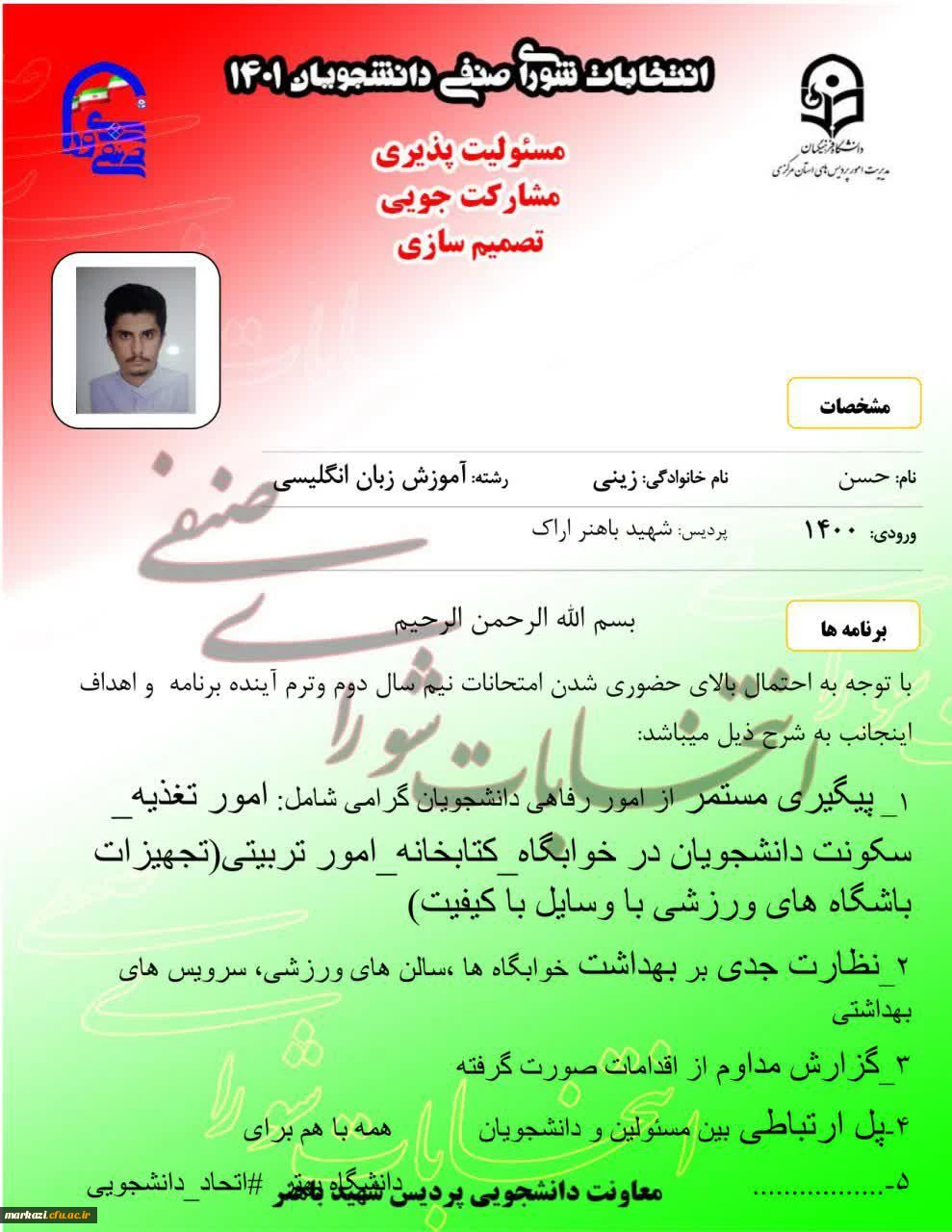 پوستر تبلیغاتی کاندیداهای شورای صنفی پردیس شهید باهنر