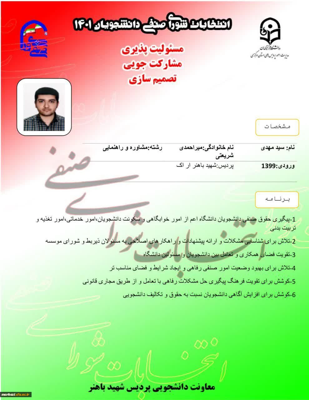 پوستر تبلیغاتی کاندیداهای شورای صنفی پردیس شهید باهنر