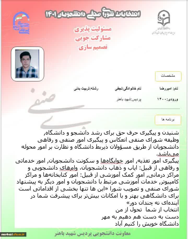 پوستر تبلیغاتی کاندیداهای شورای صنفی پردیس شهید باهنر