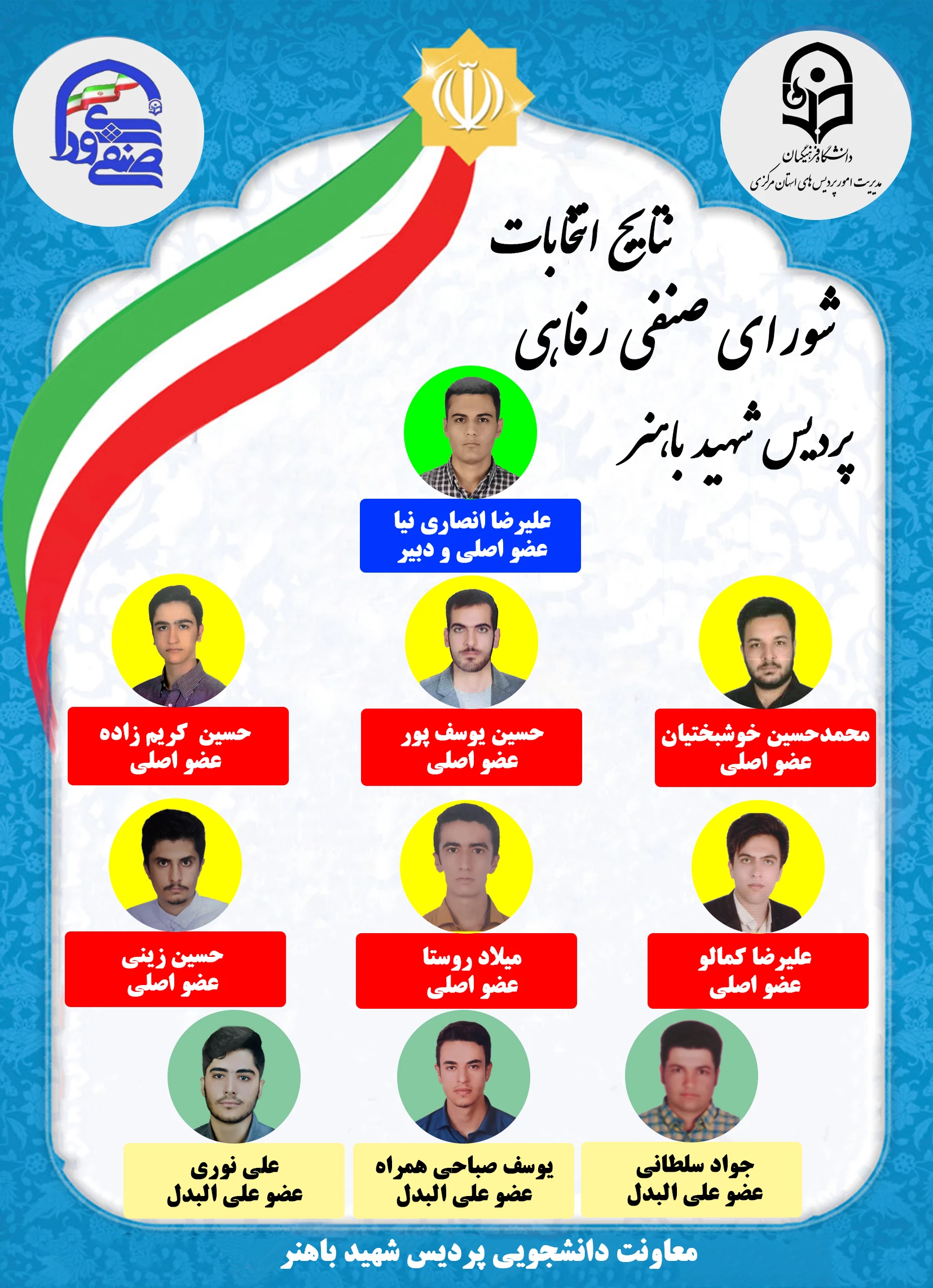 امتیاز دهید : اعلام نتایج مرحله دوم انتخابات شورای صنفی پردیس شهید باهنر سهشنبه 10 خرداد 1401 ساعت 10:19