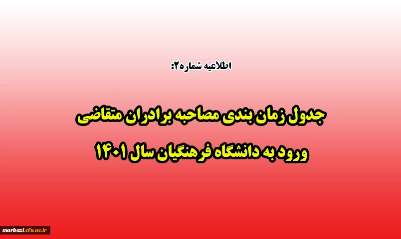 امتیاز دهید : جدول زمان بندی مصاحبه برادران متقاضی ورود به دانشگاه فرهنگیان سال 1401 2 شنبه 5 شهریور 1401 ساعت 14:13