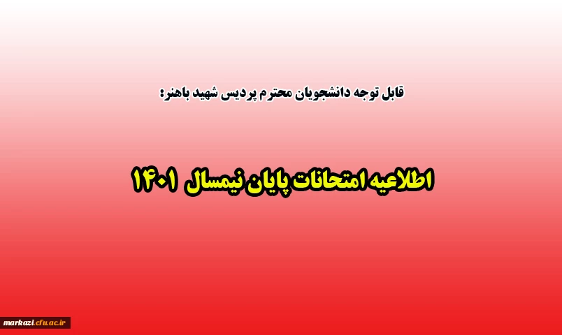اطلاعیه امتحانات پایان نیمسال 1401 2