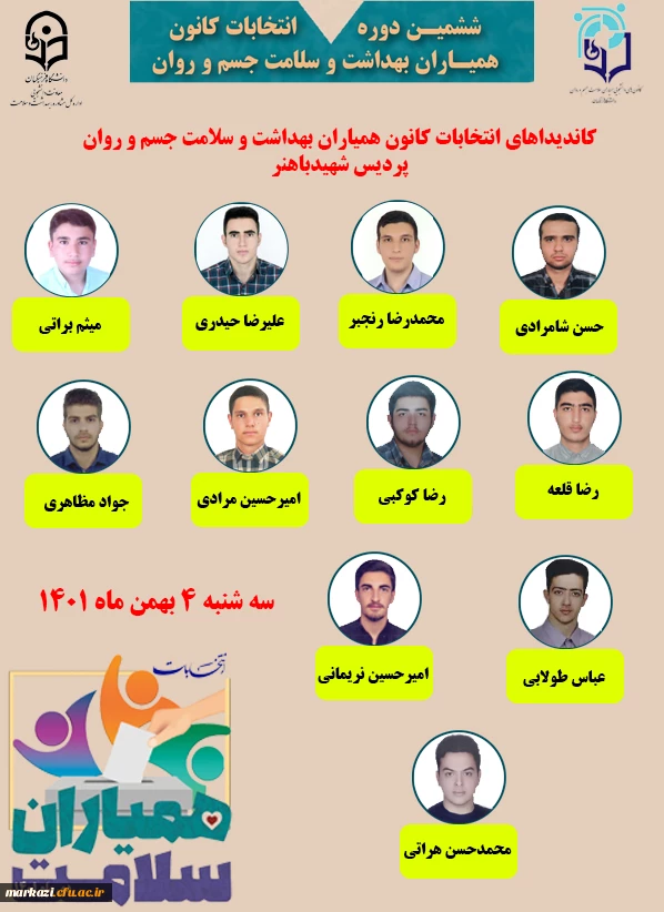 اعلام نتایج انتخابات ششمین دوره شورای مرکزی کانون همیاران سلامت جسم و روان پردیس شهید باهنر مرکزی 2