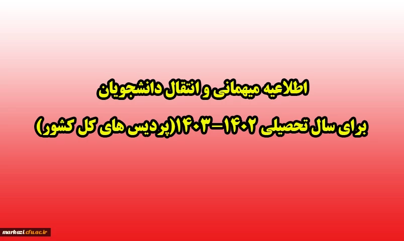 اطلاعیه میهمانی و انتقال دانشجویان برای سال تحصیلی 1402-1403(پردیس های کل کشور) 2