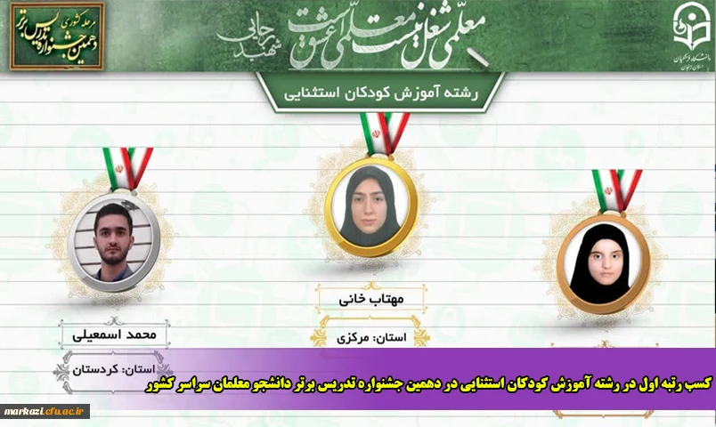 کسب رتبه اول در رشته آموزش کودکان استثنایی در دهمین جشنواره تدریس برتر دانشجو معلمان سراسر کشور 2