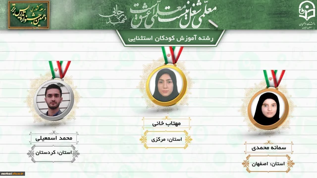 کسب رتبه اول در رشته آموزش کودکان استثنایی در دهمین جشنواره تدریس برتر دانشجو معلمان سراسر کشور 3