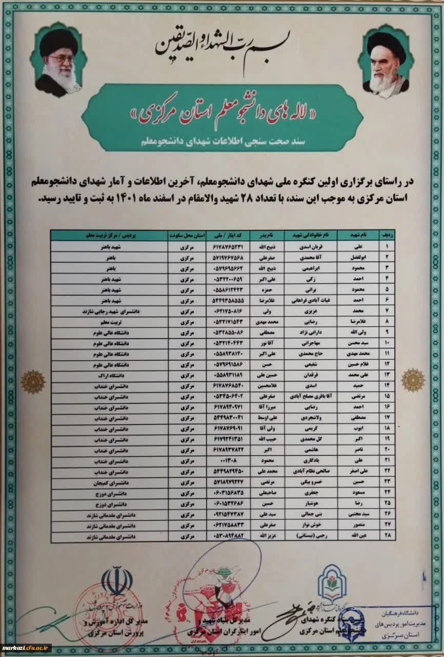 امتیاز دهید : سند صحت سنجی اطلاعات شهدای دانشجو معلم استان مرکزی امضا شد 2 یکشنبه 29 مرداد 1402 ساعت 6:27