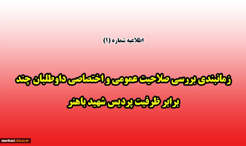 زمانبندی بررسی صلاحیت عمومی و اختصاصی داوطلبان چند برابر ظرفیت پردیس شهید باهنر برادران 2
